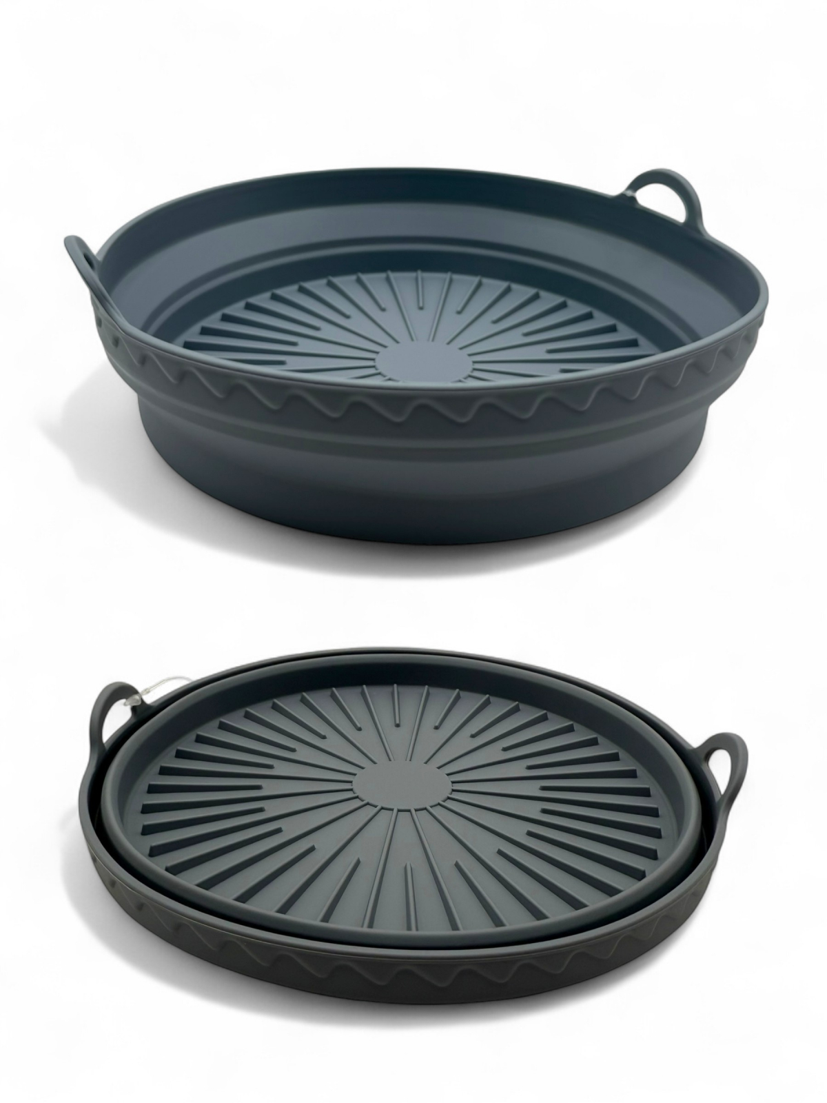 ✔️ Design rotund și pliabil – ocupă puțin spațiu, se depozitează ușor și se potrivește în majoritatea friteuzelor cu aer cald.