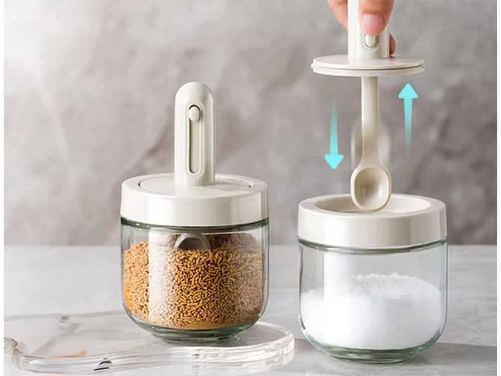 Borcanul pentru condimente cu linguriță integrată în capac este soluția practică pentru depozitarea și dozarea rapidă a ingredientelor utilizate zilnic. Designul modern și funcțional îl face perfect pentru zahăr, sare, cafea, condimente sau pudre alimentare.