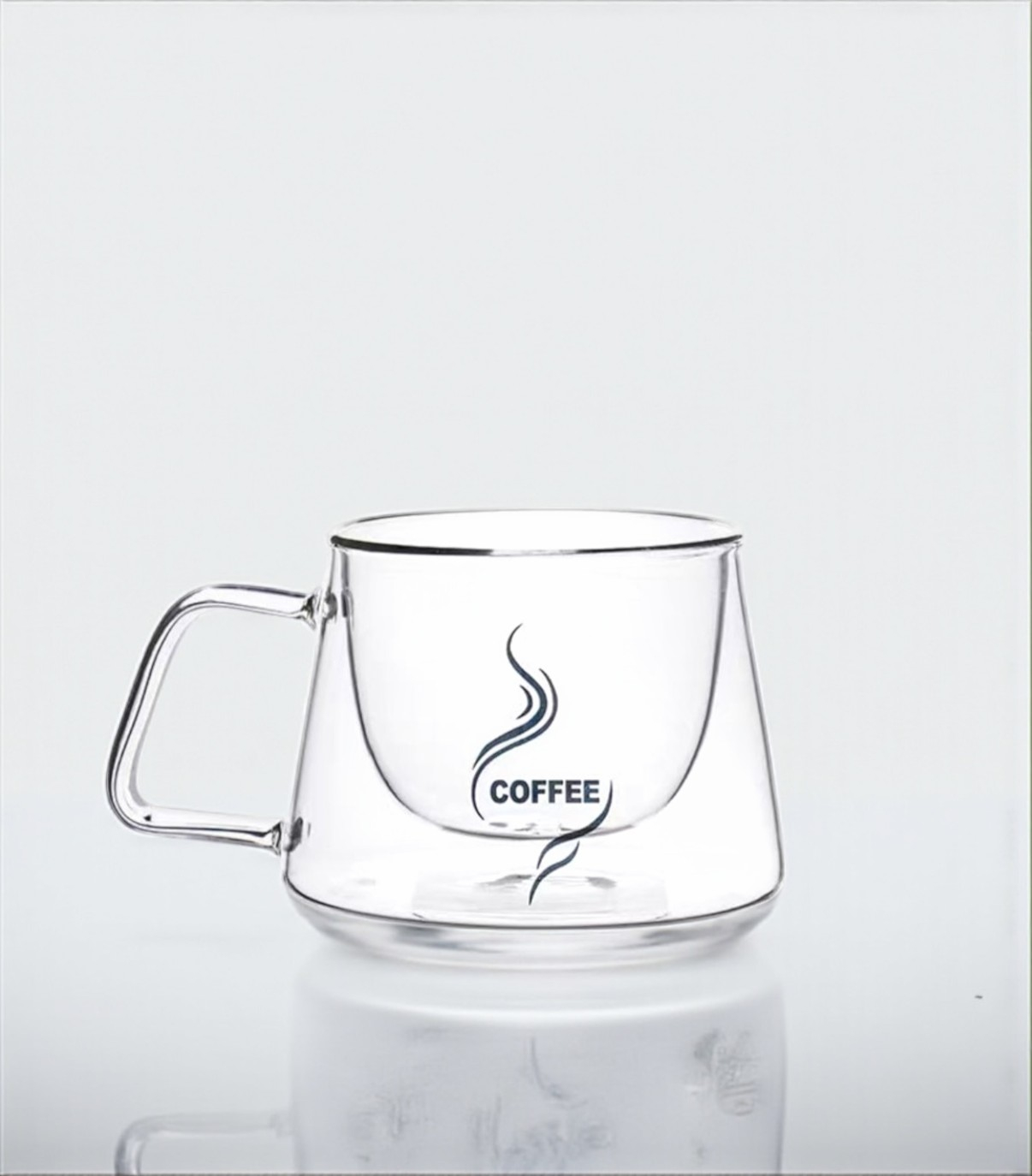 Cană sticlă borosilicată cu pereți dubli, 200 ml. Elegantă, termoizolantă și rezistentă, perfectă pentru cafea, ceai sau espresso.