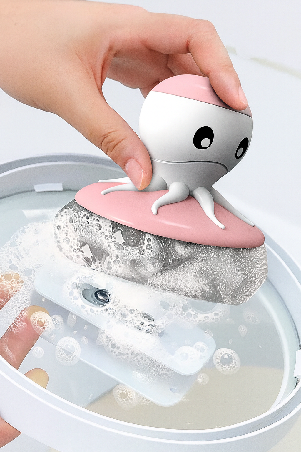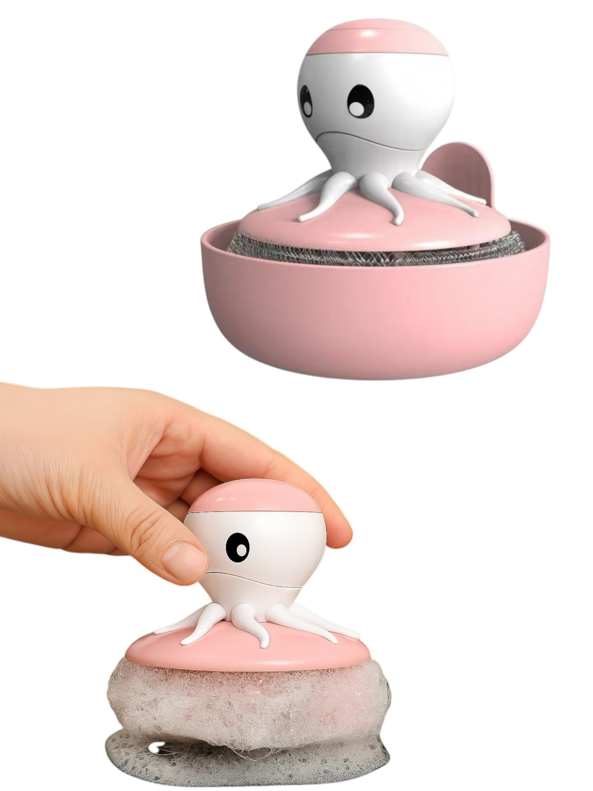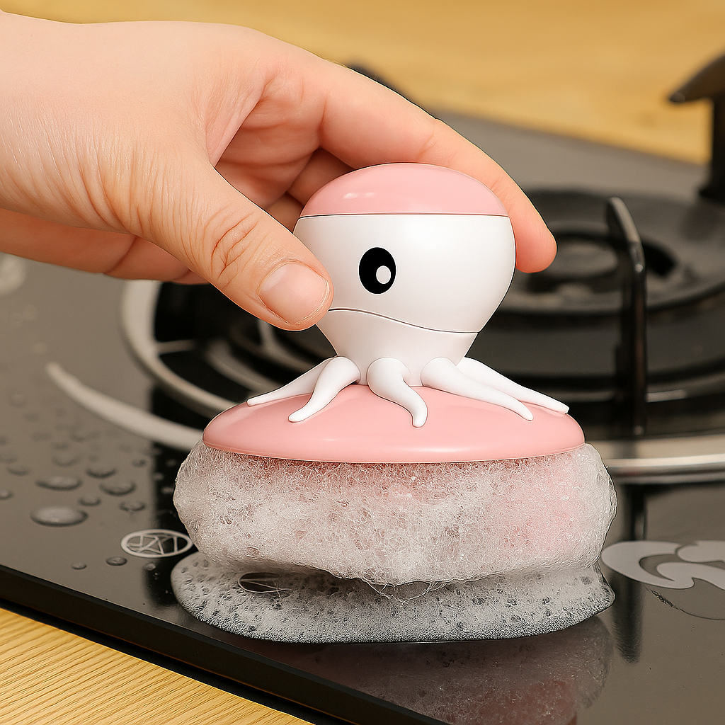 ✔️ Design ergonomic și adorabil – Forma de caracatiță nu este doar estetică, ci și practică, oferind aderență bună și control în timpul spălării.