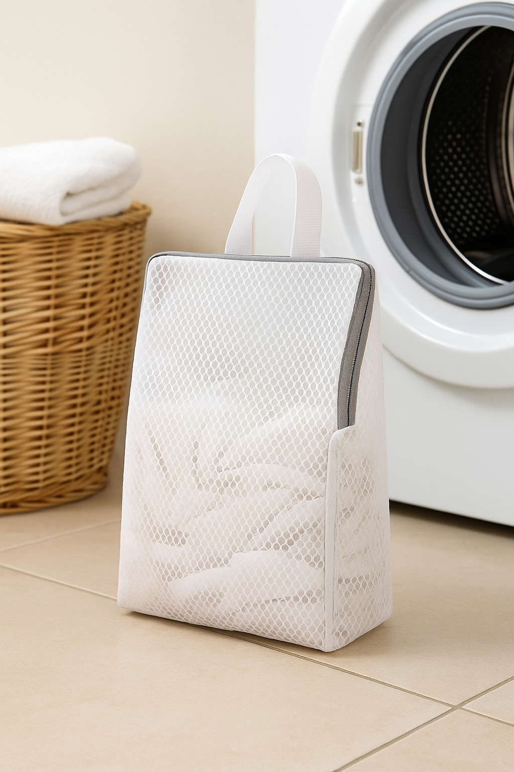 Săculețul de protecție pentru spălarea încălțămintei este soluția ideală pentru a-ți menține pantofii curați și în siguranță în timpul spălării la mașină. Construit din material rezistent și prevăzut cu fermoar, acesta previne deteriorarea încălțămintei și a mașinii de spălat.