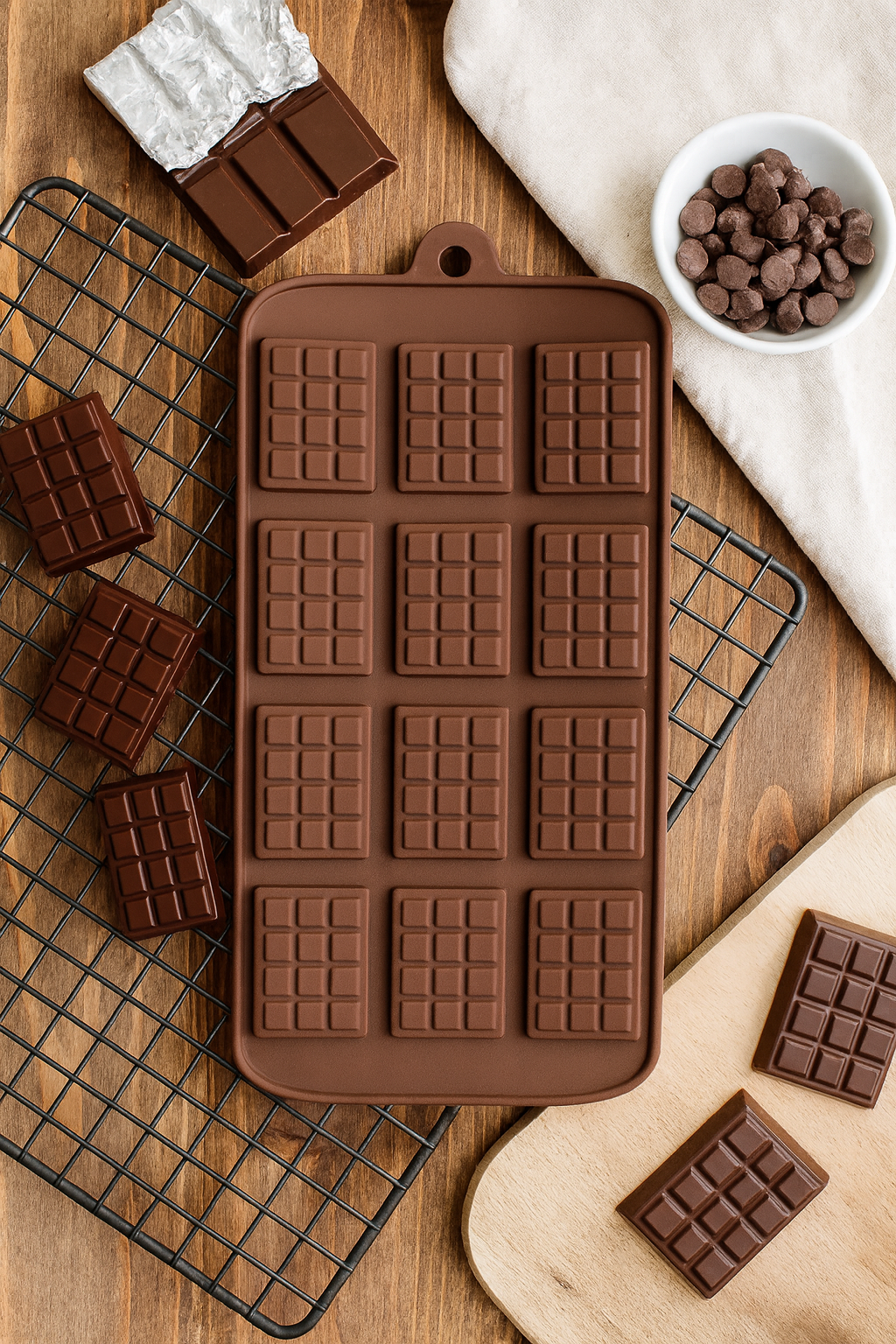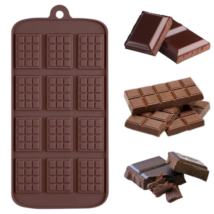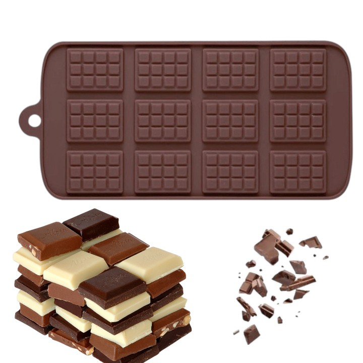 ✔️ Design practic – 12 cavități în formă de mini-tablete, ideale pentru ciocolată, bomboane, caramel, jeleuri sau chiar cuburi de gheață aromate.