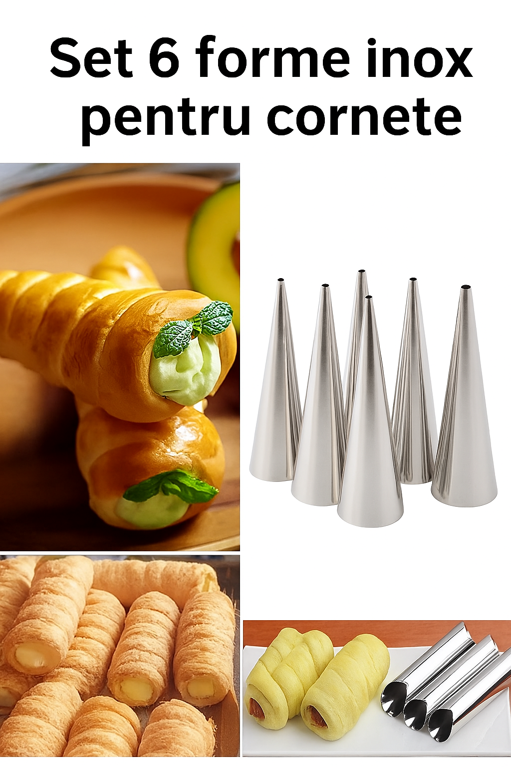 🍰 Forme conice ideale: perfecte pentru prepararea cornetelor cu frișcă, cremă, ciocolată, cremă de brânză sau carne