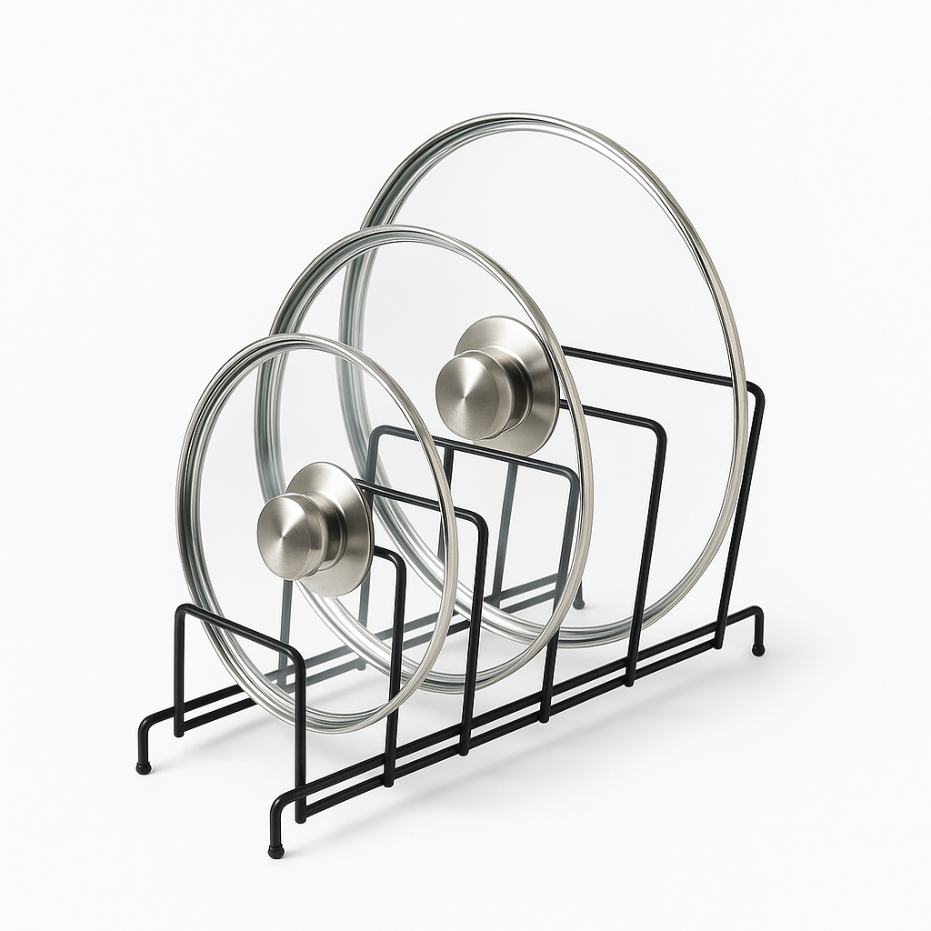 Păstrează-ți bucătăria ordonată și funcțională cu acest suport metalic pentru capace și tăvi. Realizat din metal rezistent, suportul este conceput pentru a menține capacele, tăvile sau chiar tocătoarele perfect organizate și mereu la îndemână.