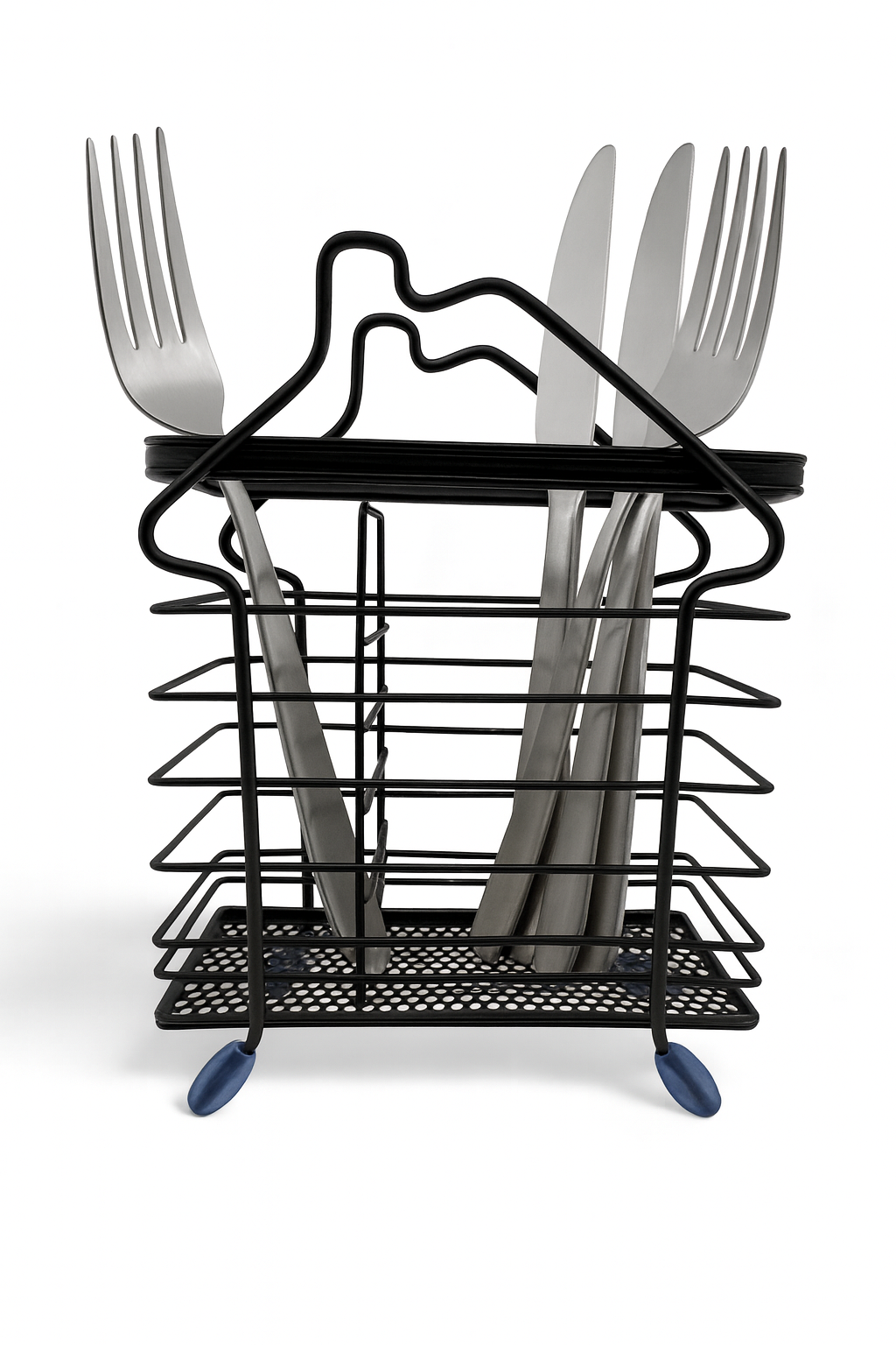 Suportul metalic pentru tacâmuri este soluția practică și modernă pentru organizarea bucătăriei. Realizat din metal rezistent, cu design elegant în formă de casă și bază anti-alunecare, acesta păstrează furculițele, cuțitele și lingurile mereu la îndemână și într-un mod ordonat.
