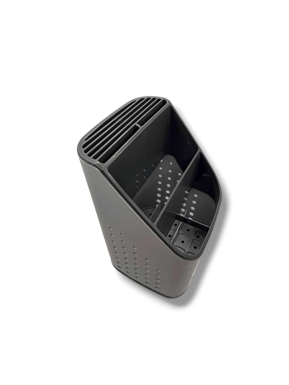 Menține-ți bucătăria ordonată și funcțională cu acest suport organizator pentru tacâmuri și ustensile, ideal pentru linguri, furculițe, cuțite și spatule. Cu un design modern și compartimente multiple, îți oferă spațiul perfect pentru depozitare, economisind loc pe blat și păstrând tacâmurile la îndemână.