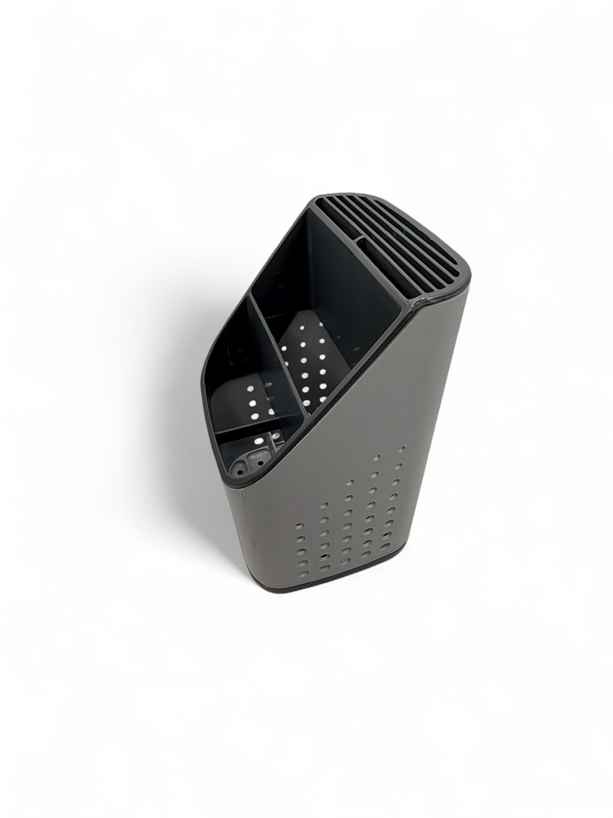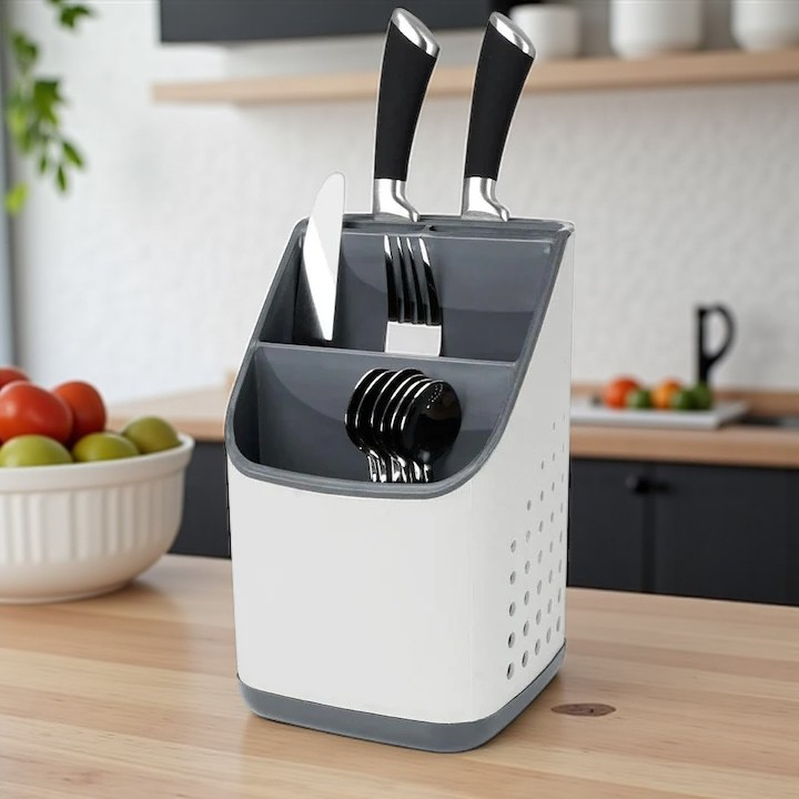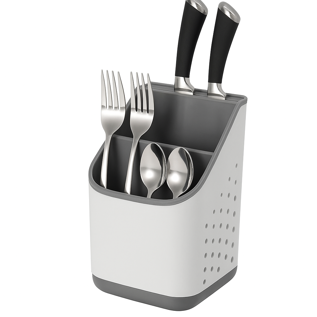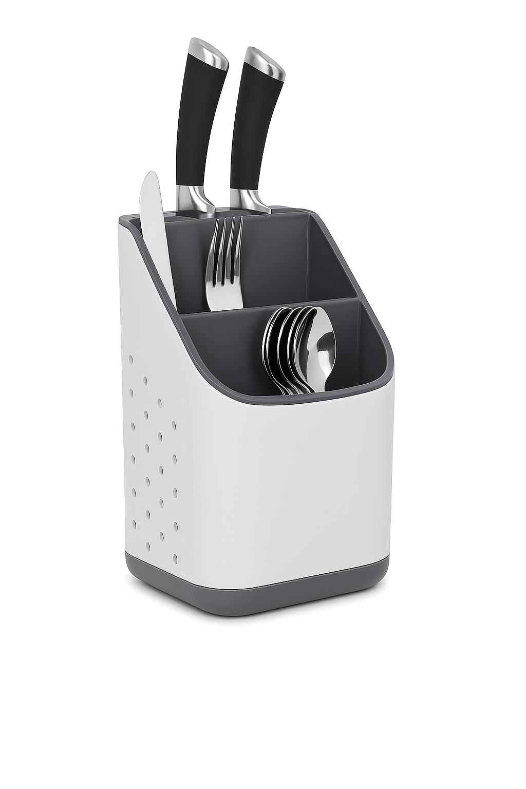 ✔️ Ventilație eficientă – găurile laterale permit circulația aerului și uscarea tacâmurilor.