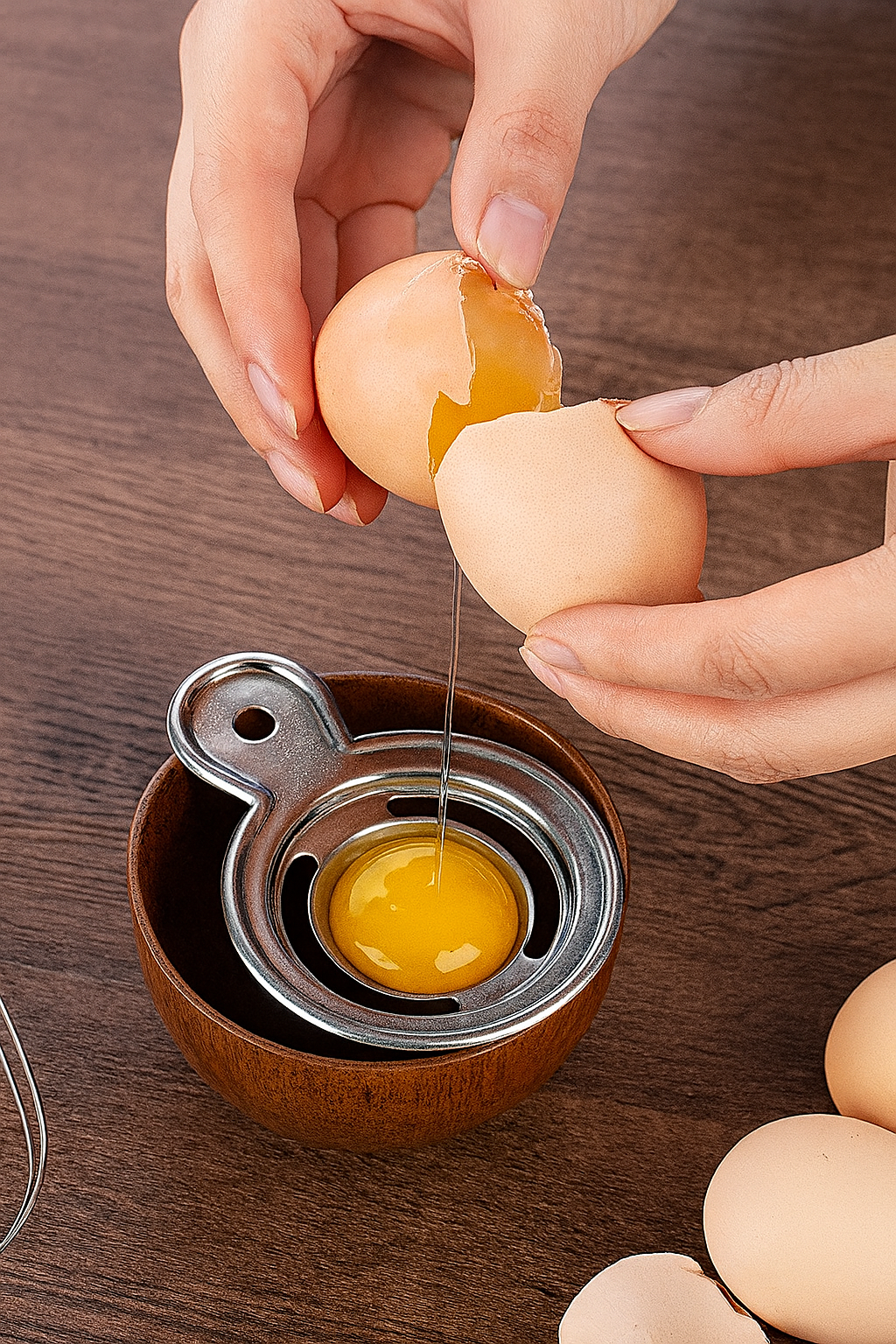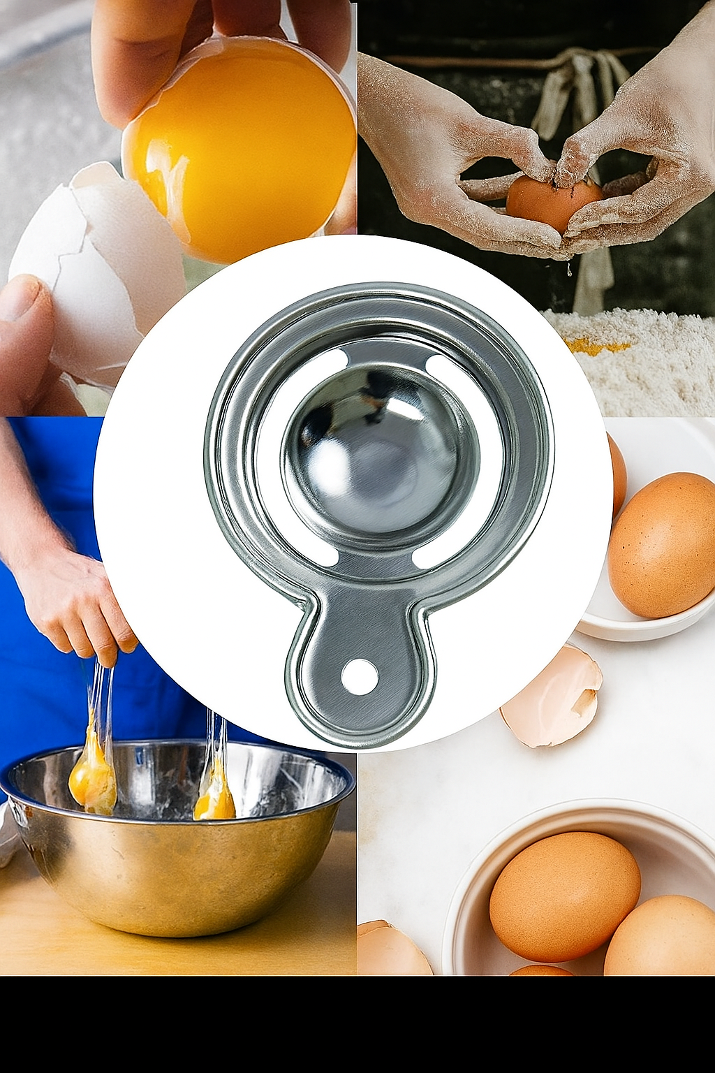 Separarea ouălor devine rapidă și igienică cu acest separator din inox, ideal pentru orice bucătărie. Perfect pentru rețete care necesită doar albușul sau gălbenușul, acest instrument îți ușurează munca și previne risipa.